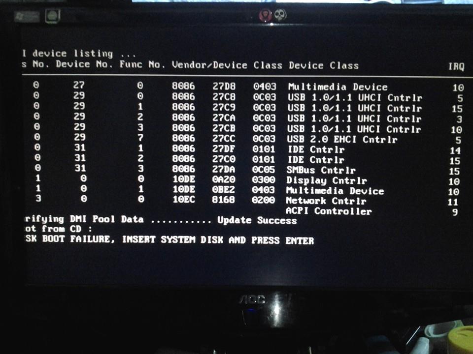 You had a CD on your CD Drive which is not bootable. So Take away the CD from your CD Drive. The System will boot from HD