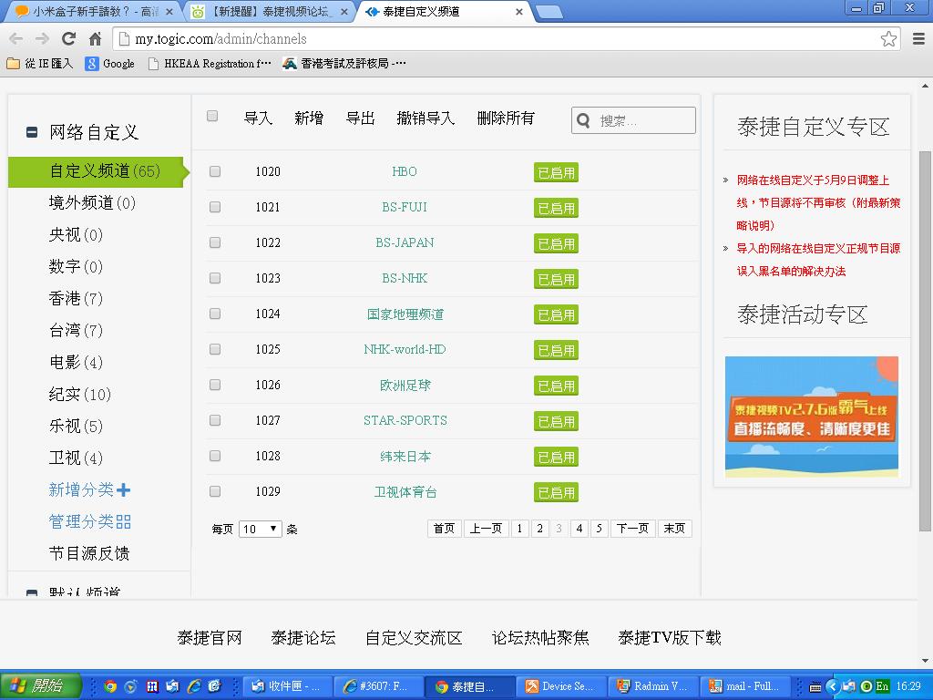 其中一个几多人用app-泰捷,好处系上网注册,之后系盒子个泰捷app输入返帐户,咁个app就同网上户口绑定左,以后你系网上更新节目源,返屋企开app就更新埋。论坛有好多人提供节目源,有好多体育足球频道、XX都有