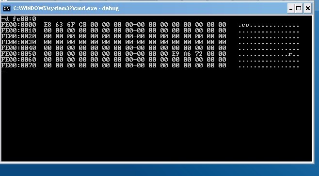 为什么我进入都debug后输入d fe00:0后,按照书上说的右边阿斯克码是主板的bios信息,可是我的是这样的: