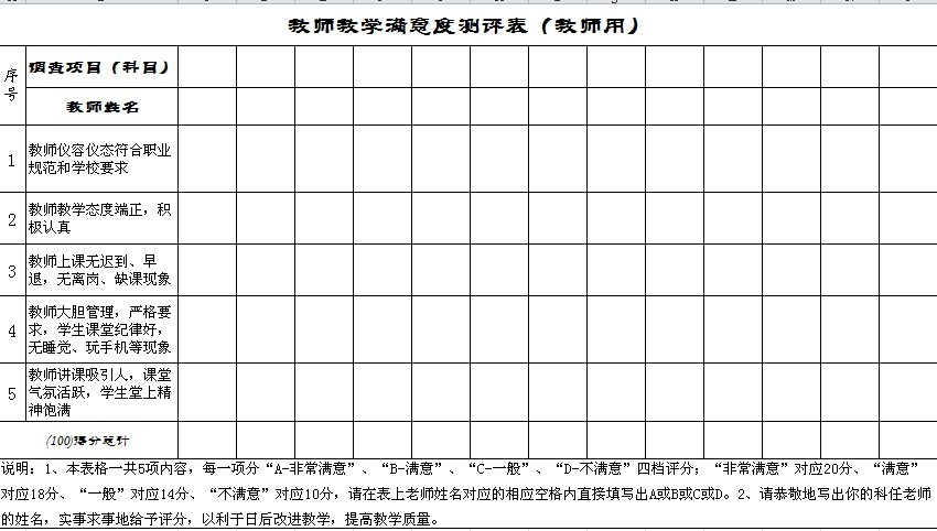例如,以上是一个教师对教师的评估表,这个表中的评估项目,如:教师仪容仪态符合职业规范和学校要求等,我都已经整合到“评估表”中了,“评估表”中包含了上图中的所有项目,其中“评估编号”代表的就是所有需要评估的项目。