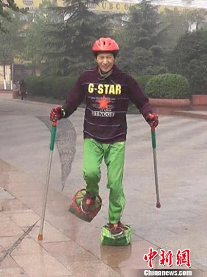 河南平顶山47岁男子孙广运,自创“另类健身法”,怪异滑稽的动作,吸引市民好奇围观的同时,也招来不少非议。 11月3日上午,记者在鹰城广场上见到了正在健身的孙广运。只见他身着暗红色上衣、绿色运动裤,头戴红色赛车帽,脚下绑着装了健身球的编织篮,两手各拿一根钢管做支撑,满面笑容地在广场上行走。走了一会儿,孙广运又坐在自制的框车里,钢管支地,像划船一样滑行,接着,又反卧在车里爬行,片刻之后,他变换花样,双脚绑上健身球蹦跳,坐在充气的橡皮凳上蹦跳,在蹦床上边蹦边练拉力器,等等,近两个小时内,他不断变换花样,动作娴熟、从容、滑稽,吸引市民好奇观看。http://www.chengrenchanpin.com **