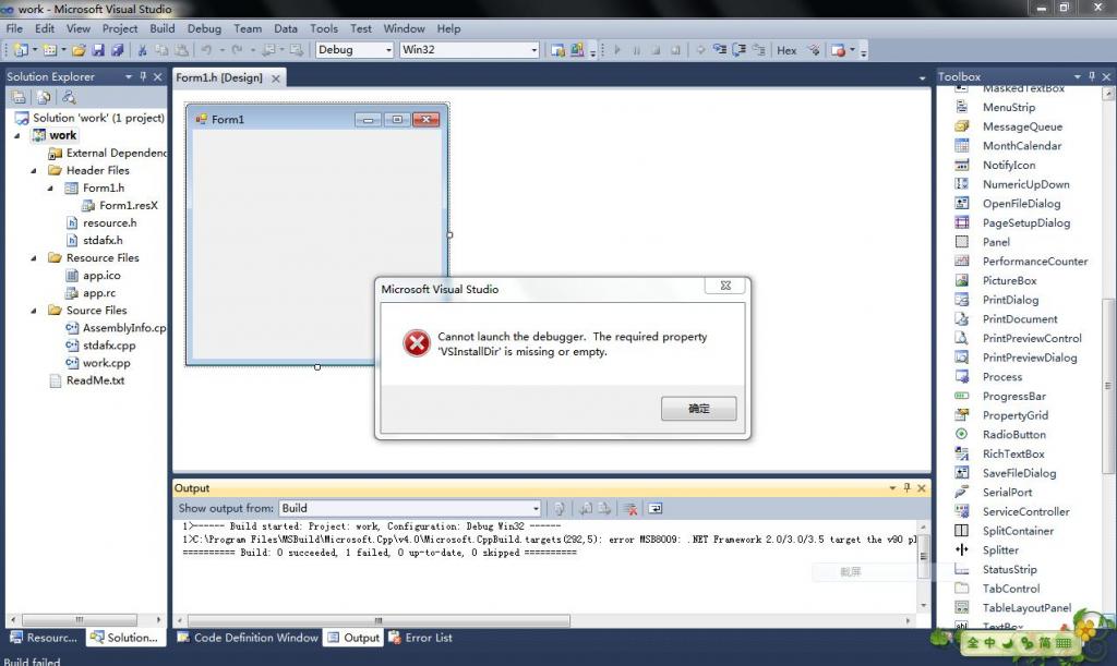 在vs2010中建立CLR工程,竟然提示出错,望高人指点,多谢。