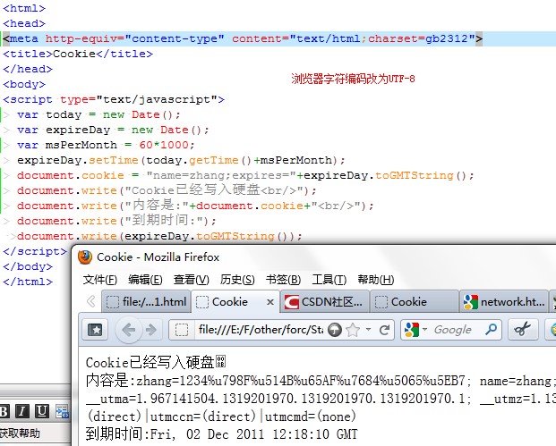 3.浏览器字符编码为gb2312时 Cookie页面有乱码