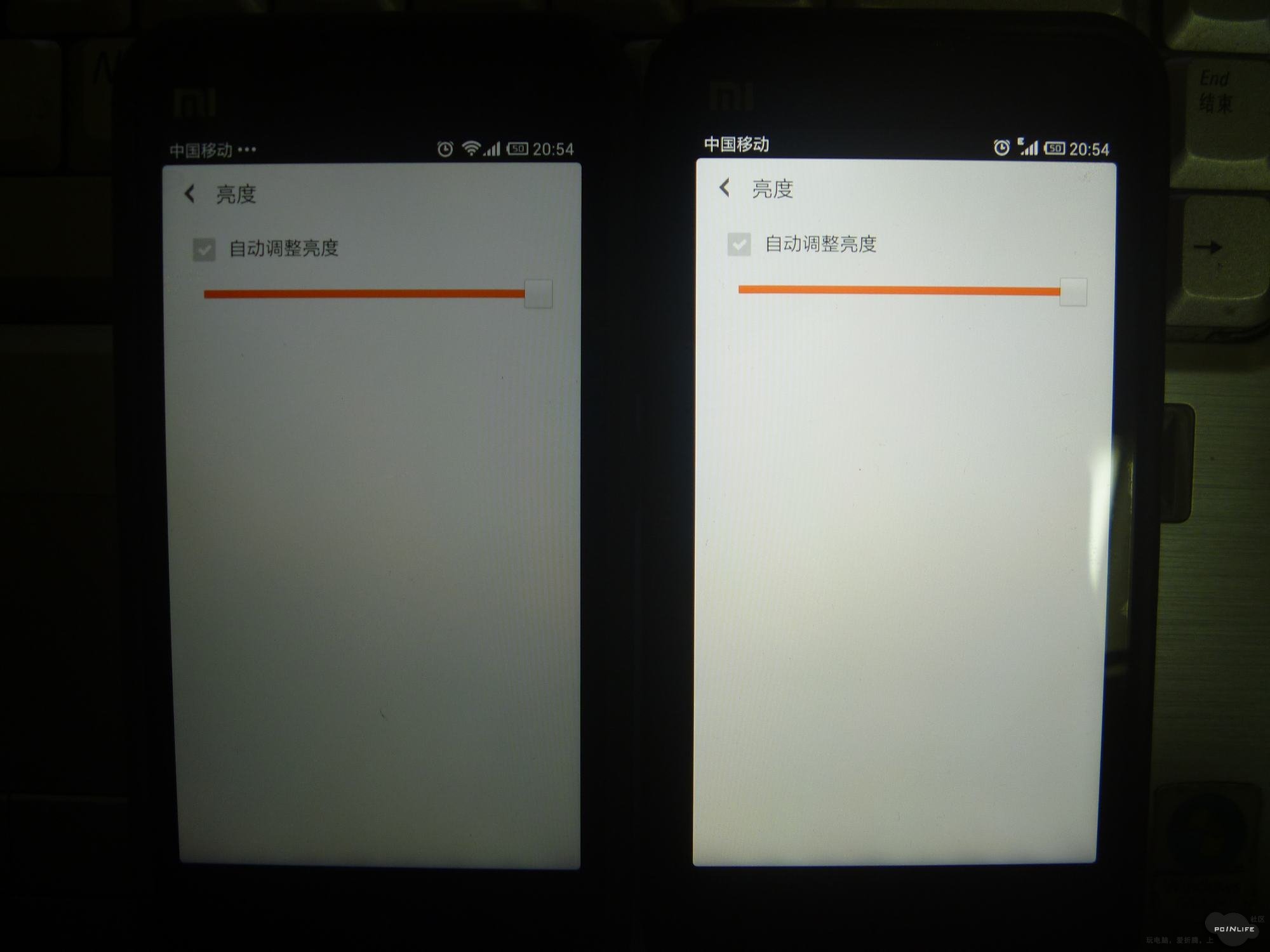 发觉亮度差别很大。刚好手上有两部小米2代,对比下,发觉两者的屏幕不一样,应该使用了不同的屏幕。