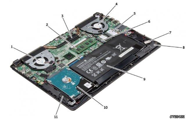 ▲在Vostro 5460上使用双散热风扇设计,使用2颗散热风扇在机壳后方两侧,中间用v型的纯铜热管连接导热,纯铜热管刚好就放置会发出高热的CPU及显卡上方,空气由机壳后端正中央进入,经由带著高温的纯铜热管把热导到两侧的风扇中,然后把热给带出去,就是这个热循环确保机壳温度不致过高;而Vostro 5560则是采用单风扇设计,位置在中央后方,使用双纯铜热管将热从侧边往后方带出去