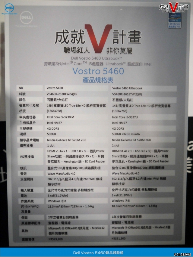 ▲墙边介绍这次Vostro 5460产品的优点及规格,也是等下主办单位要报告的主要内容