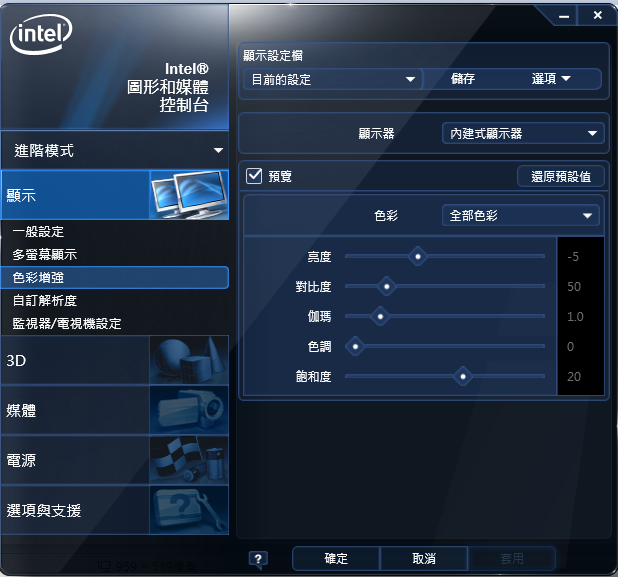 调整后看起来好多了,色彩增强功能假如也有调整的各位,能否分享一下你的数值~谢谢。