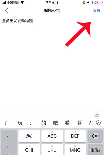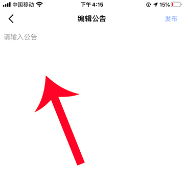 5、进入公告编辑后,点击输入要编辑的内容,然后,点击发布即可。