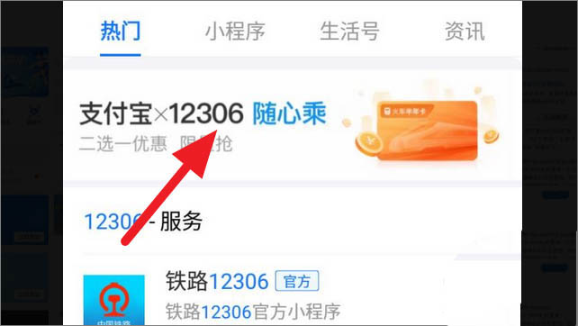 3、出现搜索结果后,点击图中第一个搜索结果,12306随心乘