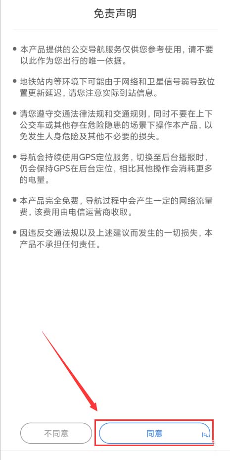 9、如是首次使用,还需要同意免责声明,点击同意即可。见下图