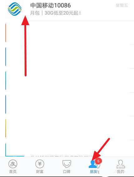 2、在朋友选项页中,搜索中国移动10086的生活号. 关注并打开它。