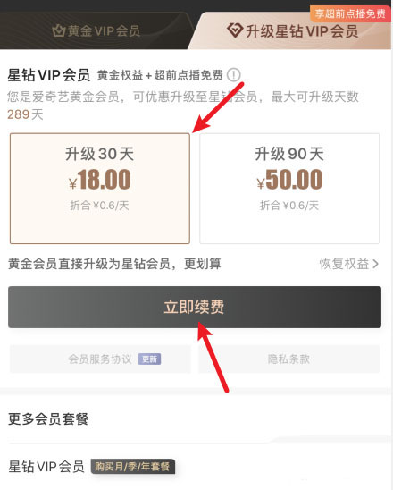 以上就是爱奇艺升级星钻VIP会员的教程,希望大家喜欢,请继续关注PHP爱好者。