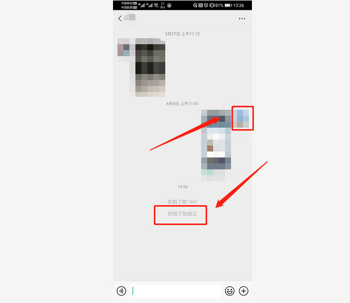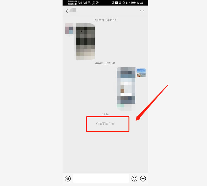4、接着就可以在两人的聊天界面中看到一条状态信息:你拍了拍对方的昵称;