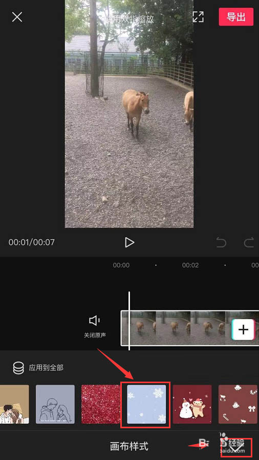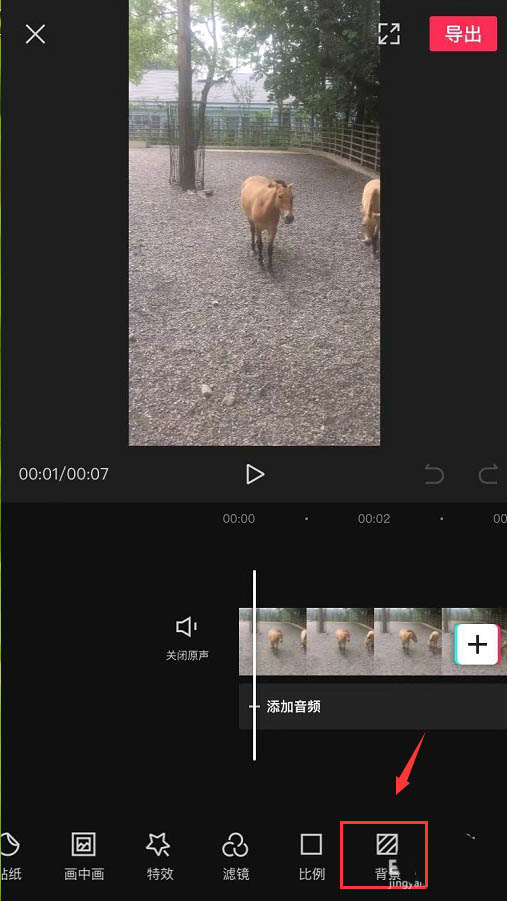 2、进入手机相册添加视频,在编辑页面点开背景,如下图