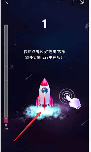 4、开始以后,我们要用手快速的点击屏幕,速度越快,里程就越长,达到相应的里程,就有红包了。