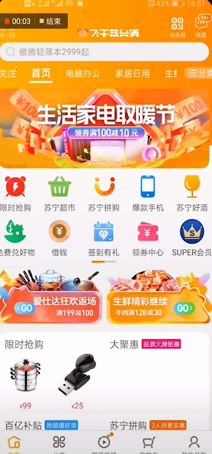 1、打开苏宁易购app,进入软件主界面。