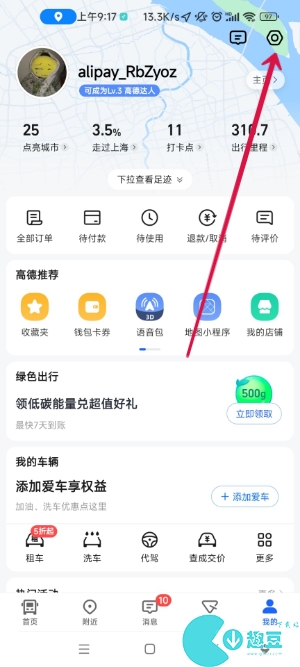 第一步:在当前页面下载【高德地图app】,或者是打开已有的高得地图app,进入到首页之后,点击右下角的我的;