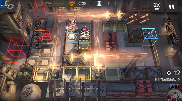 2、接着等到能天使击败第一波的一些敌人之后,就可以在能天使的左侧位置放置澄闪。