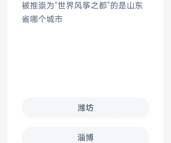 问:被推崇为“世界风筝之都”的是山东省的哪个城市