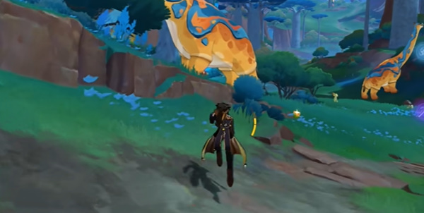 原神5.0版本中也是新增加了很多的隐藏成就,这个烦请高抬贵脚就是其中的一个,这个成就的获取方式比较独特的,玩家需要找到这个大型的恐龙然后直接直接靠近这个脚部就可以触发这个成就,获取的方法还是比较简单的,下面一起来看看详细的流程吧!