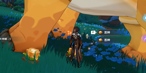 2、然后向着地图的左侧这边飞过去,可以参考这个石头上有个眼睛,如果玩家收集了这个神瞳了,也可以看这个石头比较好。