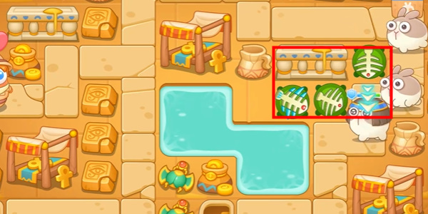 1、开局放上三个鱼骨来清理兔子和道具。