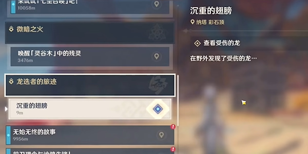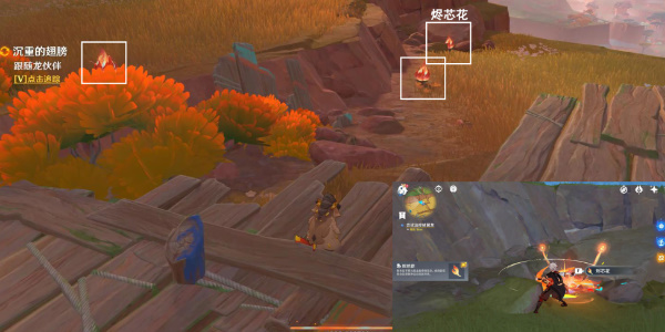 3、然后跟随龙伙伴,前往烬芯花位置,触发对话。