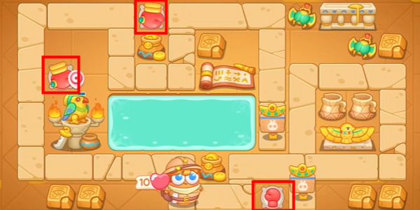 3、然后中间出现宝箱的时候可以先清理这个宝箱,在右上角的位置注意放上一个拳头。