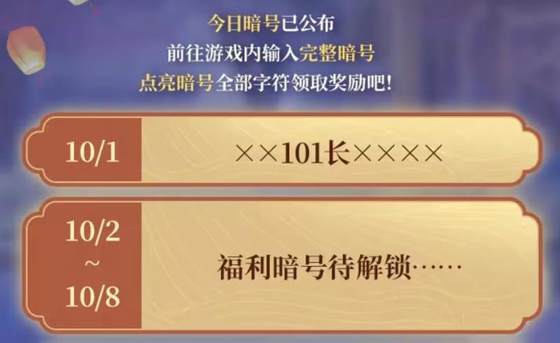 另外请确保在暗号有效期内领取奖励,逾期未领取的奖励将无法补发。假期限定时装将在10月8日解锁,敬请期待。