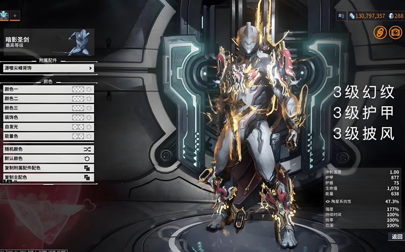 金翼披风的外形设计如同巨大的金色翅膀,装备后能让战甲瞬间变得格外拉风。源噬尖峰背饰需要达到3级才能解锁披风效果。圣装伊萨伯背饰采用白蓝配色组合,肩部带有标志性的圣剑造型设计。