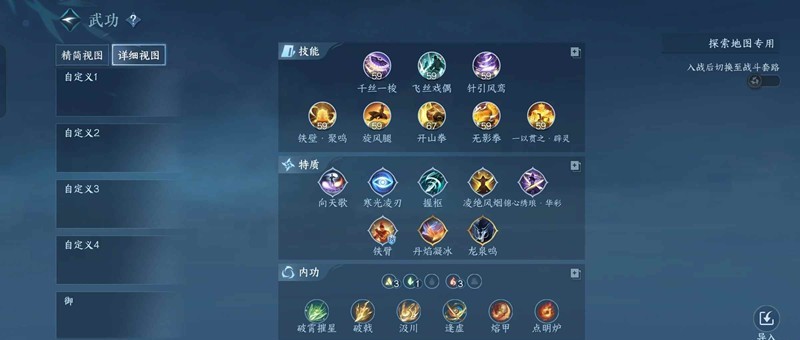 技能携带:必带一以贯之、无影拳、开山拳、旋风腿、铁壁聚鸣。绝技带风城新绝技,群侠带新群侠(绑玉不够还是老赛念吧优先抽新绝技)。