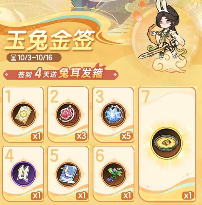 中秋佳节即将到来,《杖剑传说》手游特别推出了「月满金桂」限时活动,在10月3日至10月16日的活动期间,玩家每天登录游戏即可领取丰富的奖励。累计签到4天,还可以免费获得超萌的【兔耳发箍】限定头饰,让你在中秋佳节变身可爱玉兔,增添节日气氛。