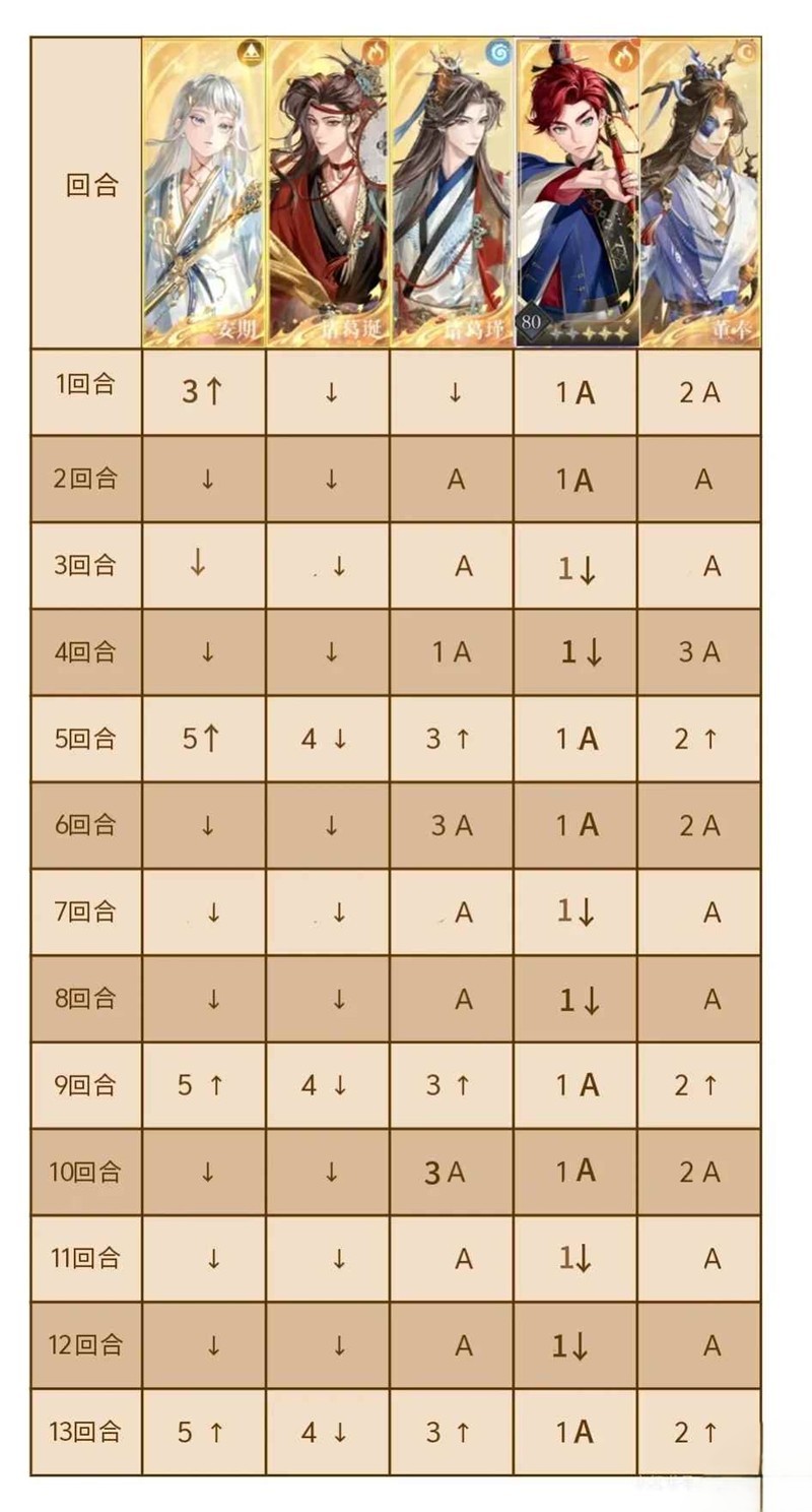 安期二星,如果一星安期第一回合下拉,小兵出场先放大,第五回合A,其它照抄表格就行了