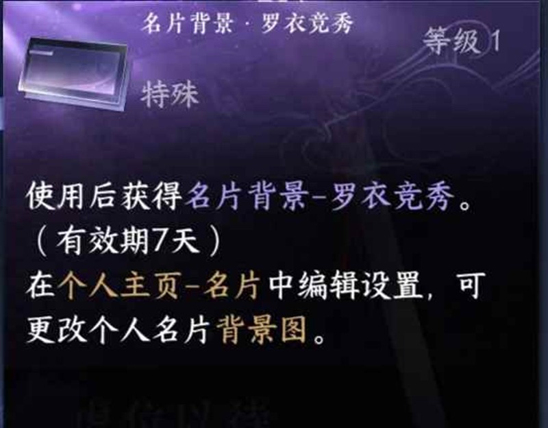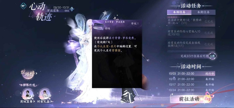 8.完成3个本场任务可获得7天名片背景·罗衣竞秀