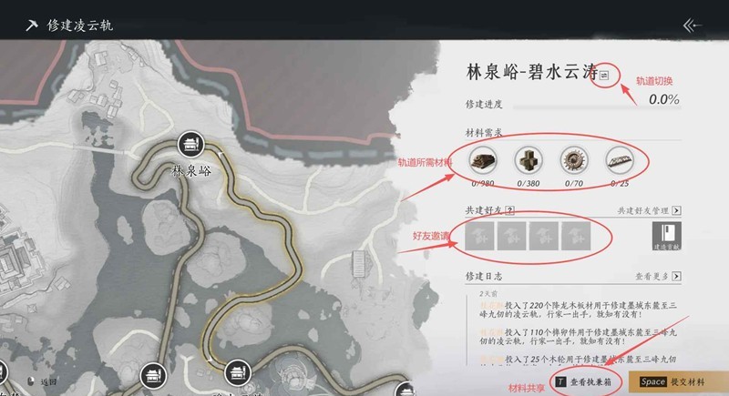 ①可邀请4名好友共建,一人投放材料进度会同步