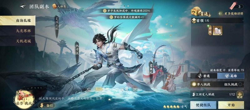 .选择普通难度浅海,把人机素问全换成别的职业,老一对话速小问开启蹈海狂客,老二速小问开启拯救玄鳌,老三开启急速涌泉,通过完成浅海全场挑战(拒绝羽化/迅疾如风/力克强敌),获得罗彩匣×12