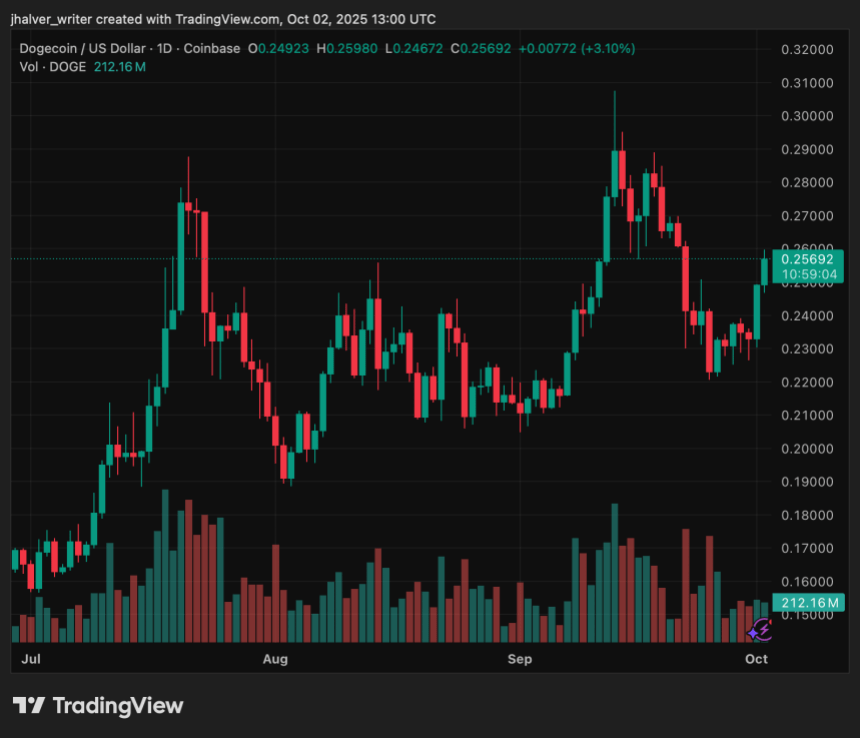 狗狗币能涨到1美元吗?看涨形态与全球采用点燃十月新乐观情绪