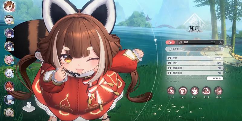 芃芃为火属性狐娘,同样是主C角色。她的技能连段以火伤为核心,最后一段可触发空中连踢接落地砸击,造成范围火属性伤害。操作上建议前三段普攻后立即蓄力重击,随后衔接空中连击打出完整输出链。她的技能烈焰旋踢具备打断敌人施法的能力,但技能硬直较长,释放时机需谨慎把握,避免被反打。