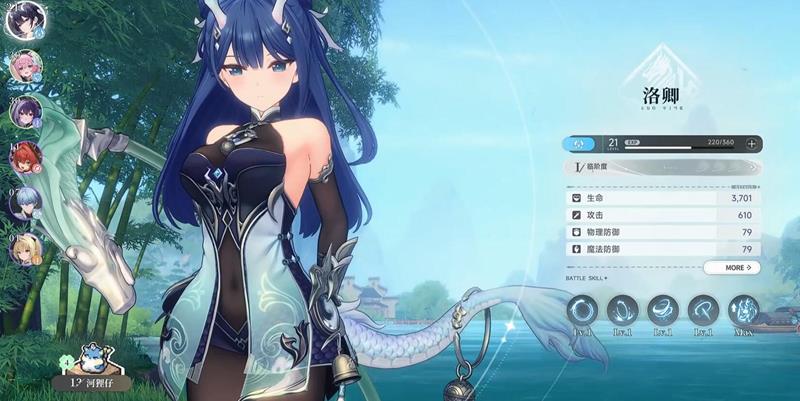 阿比是水属性龙娘,定位为破韧核心。她的普攻结束后会触发突进效果,突进后可直接进入重击第二阶段,整套连招能高效削减BOSS的架势槽。大招对拥有三层印记的敌人破韧效率提升200%,配合洛卿的结界可实现无缝破防。阿比在破韧队中表现突出,尤其适合与洛卿组成双水破韧组合。