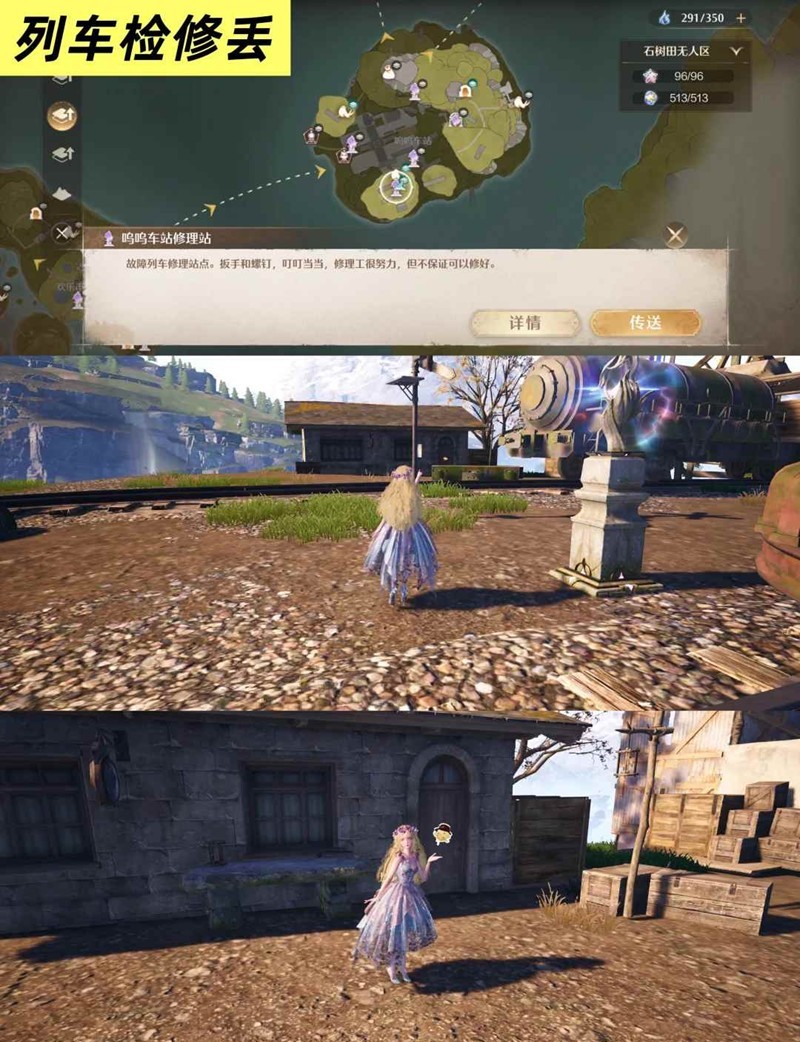 位置:传送落地后往传送锚点旁边的黄色棚子方向,穿过黄色棚子走到头,史丢丢在列车和墙体夹角处的箱子上。