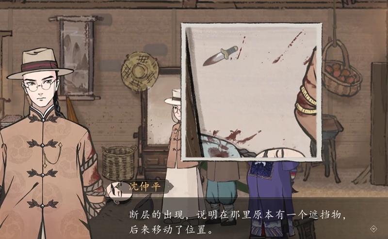 游戏一开始,主角在一间屋内醒来,随即被他人指认为杀人嫌犯。为了洗清嫌疑,必须在这间密闭房间中寻找能够证明自身清白的关键证据。首先检查房间内的镜子,可以发现镜面曾被遮挡过,移开后露出藏在后面的血衣。这件血衣将成为后续自证环节的重要道具,证明你并非案发时的真凶。提交该线索后,捕快会暂时解除对你的怀疑,并允许你继续调查现场。