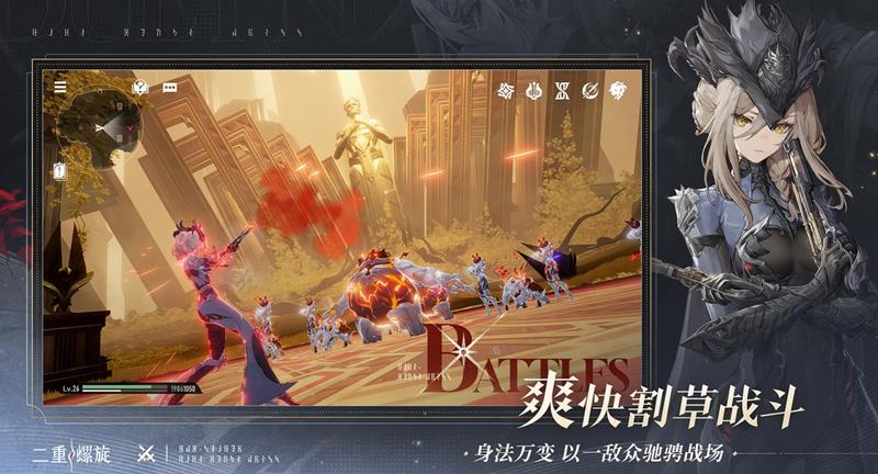 在战斗系统方面,二重螺旋融合了动作射击与近战格斗机制。玩家可携带多种武器,并根据战况自由切换远程与近战装备,适应不同敌人和战斗场景。游戏引入立体位移系统,支持空中闪避、悬浮与浮空连击,部分角色甚至具备长时间滞空能力,可在空中与BOSS展开对决。这一机制极大丰富了战斗维度,使战斗不再局限于地面,提升了操作策略与视觉表现力。