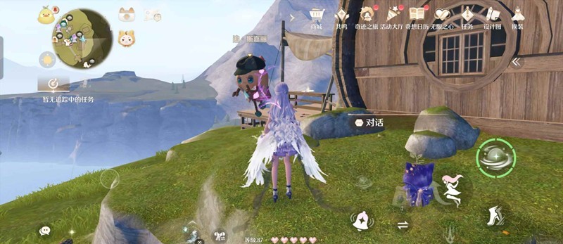 2、传送到“木桶小居”,落地打开小地图能看到任务指引,和NPC“追·斯嘉丽”对话