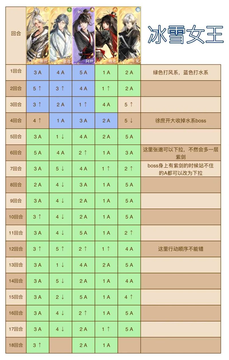 进去优先把水系boss打死,然后再打风系,配队要有风火水密探,我这个练度配队生存无压力的,如果练度低一些站不住的,boss身上有紫剑的时候都可以下拉(除火系,要消紫剑),等没有紫剑的时候再输出,(风系尽量不要攻击)
