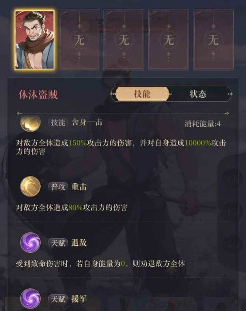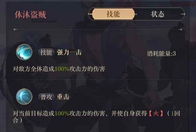 盗贼死亡,召唤4名小兵,小兵能量为3格,血量为6w血,普攻是给自己上【火】——技伤up