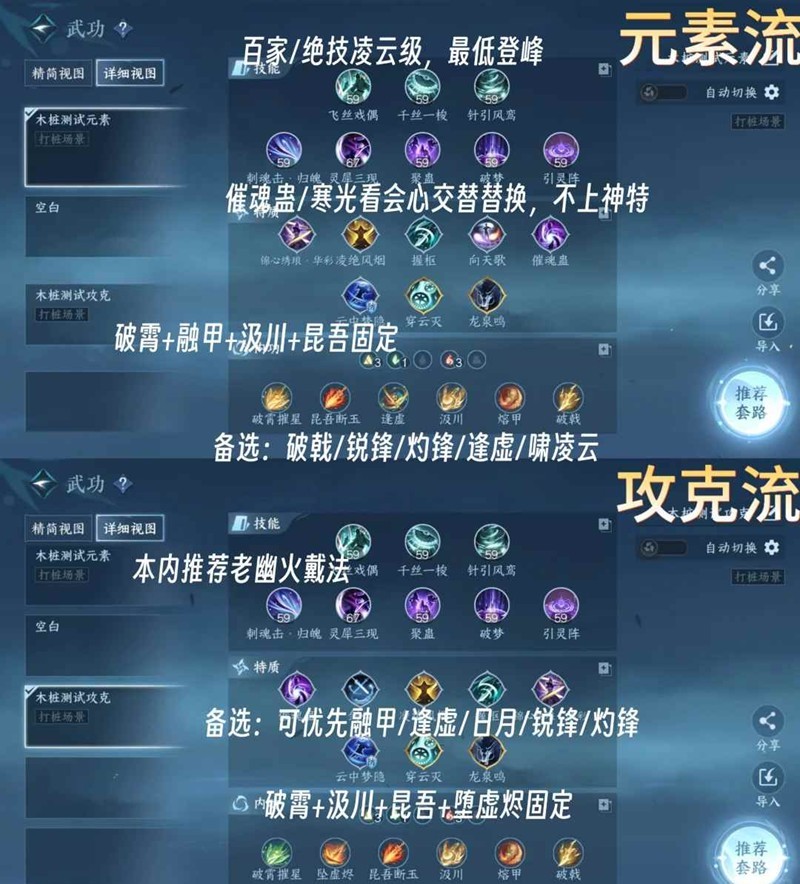 优先3金3火1木,需补充1木,词条占比可按主词条收益面板,词条优先原则,破霄+汲川+昆吾优先级,元素允许的话,逢虚可更换多词条内功上阵