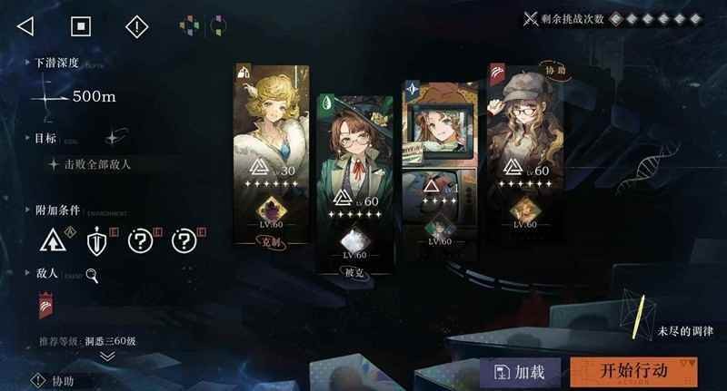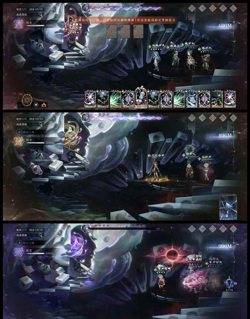 900-1000m:薪血队。由于我的薪血队是全0塑共鸣10,所以对手法要求较高。我的核心思路是每一回合出牌都要精密计算,尽量保证所有拐位角色能给诺谛卡提供的buff都在。并且,根据关卡机制,每回合都尽量避免同一角色重复出牌。最终胜利了。