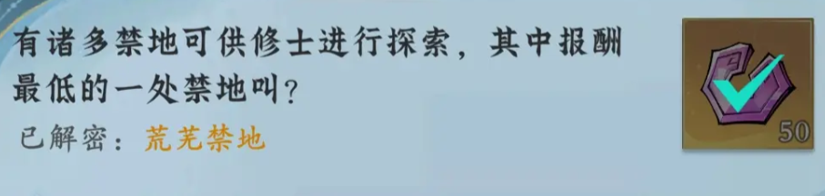 1、有诸多禁地可供修士进行探索,其中报酬最低的一处禁地叫?荒芜禁地