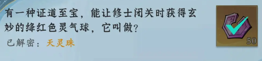 2、有一种证道至宝,能让修士闭关时获得玄妙的绛红色灵气球,它叫做?天灵珠