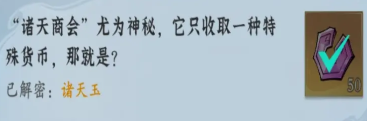 6、诸天商会尤为神秘,它只收取一种特殊货币,那就是?诸天玉
